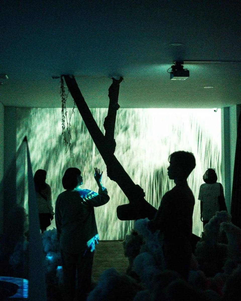 - Cerita Pertama: tentang eksploitasi alam. Ada sejenis alat sensor yang mengikuti gerakan tubuh, tanaman yang digantung dengan rantai, dan lukisan artistik yang bisa jadi latar berfoto kamu.